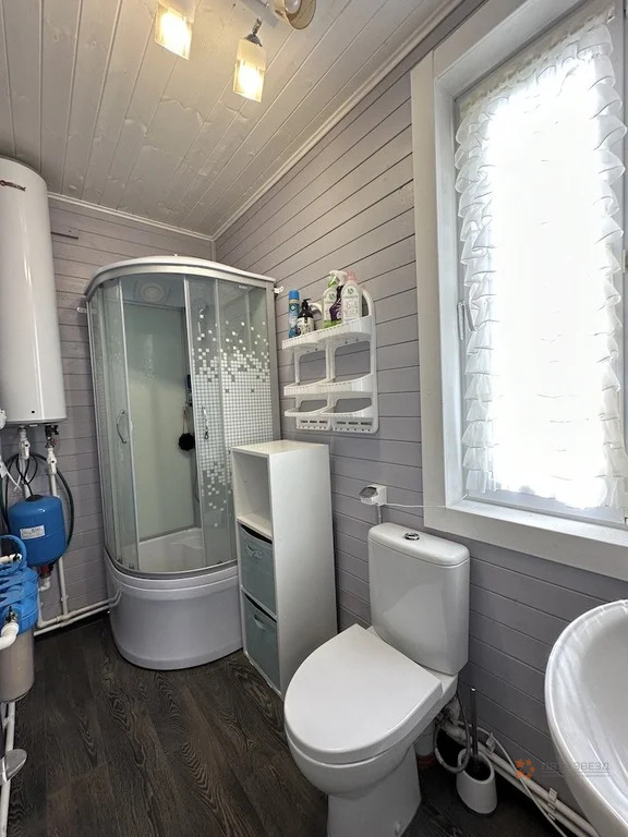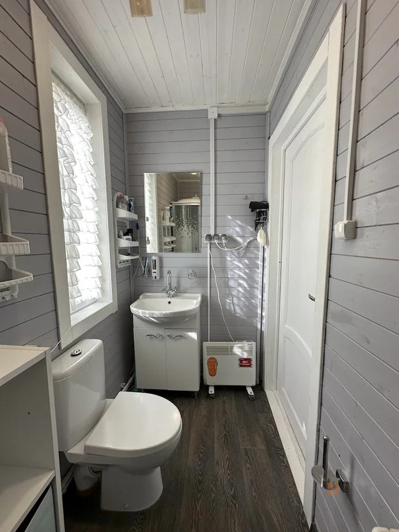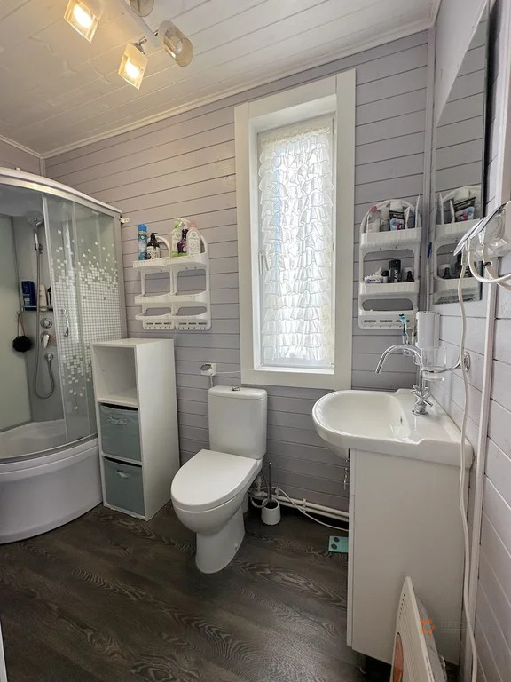 Фундамент - свайно-винтовой. Крыша - металлочерепица. Дом каркасно-щитовой с утеплением 150 мм. Полы и кровля с утеплением 200 мм. Снаружи дом обшит фиброцементным сайдингом и сайдингом. Внутри дома: стены и потолок обшиты вагонкой. На полу на первом этаже – практичный линолеум, на втором этаже – полаченная половая доска. Окна - пластиковые стеклопакеты. Дом оборудован всей необходимой техникой, в том числе установлено два кондиционера.
